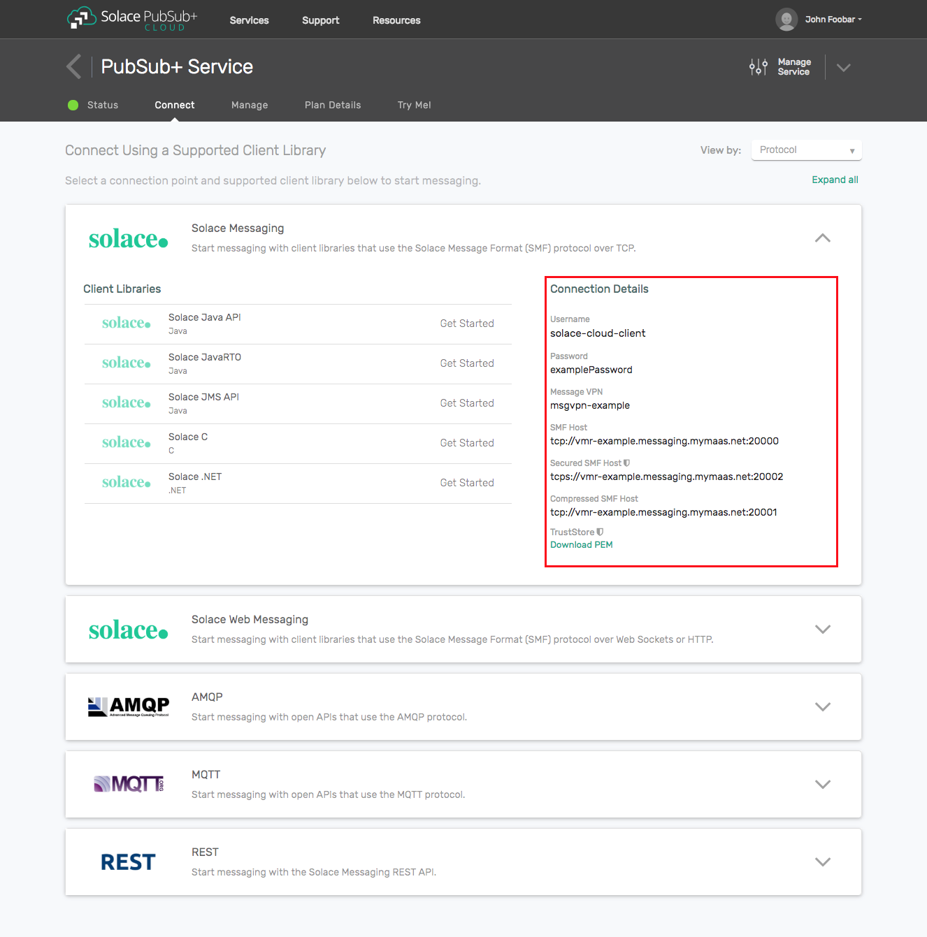 There are several ways you can get access to Solace messaging and find these required properties.